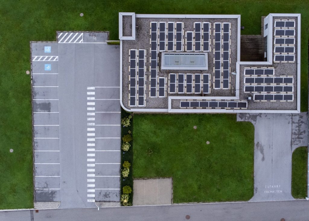 Das Gebäude ist hell, übersichtlich und barrierefrei gestaltet. Große Fensterflächen sorgen für natürliche Helligkeit und eine freundliche Atmosphäre.